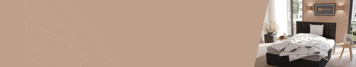 Die Bettdecken und Kopfkissen in der Spessarttraum Bronze Kollektion sind in zwei verschiedenen Füllvarianten erhältlich: einer Variante mit 90 % europäischen Daunen und einer Variante mit einer hochwertigen Faserfüllung. Beide Varianten bieten eine ausgezeichnete Wärmeleistung und sind besonders pflegeleicht.
