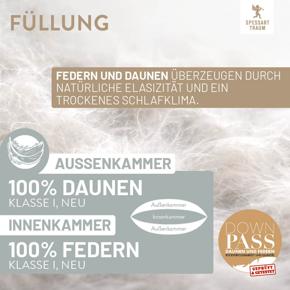 • 100% weiße neue Daunen (Außen), Klasse I