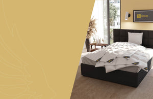 Unsere Spessarttraum Gold Kollektion besteht aus 100 % Gänsedaunen und bietet eine luxuriöse Schlaf-Erfahrung für jeden Schlaftyp. Die geruchlosen Gänsedaunen sind besonders hochwertig und verfügen über eine hohe Bauschkraft, die für eine optimale Isolation und eine angenehme Wärme sorgt.