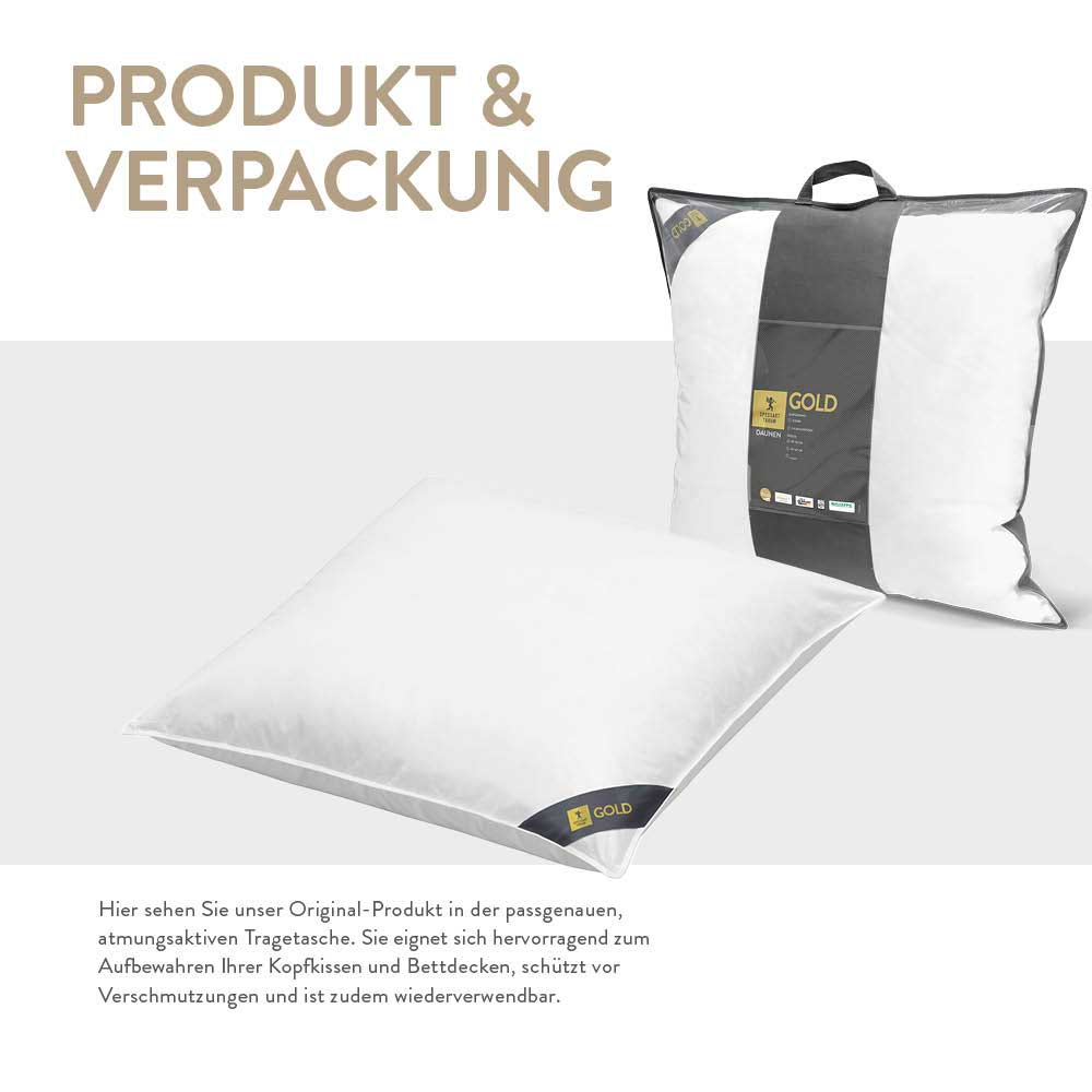3-Kammer Gänsedaunenkissen Gold, 90 % Gänsedaunen / 10 % Gänsefedern