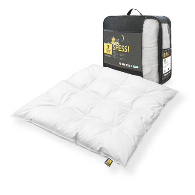 Entdecke die Spessi Kinderbettwaren Kollektion, bestehend aus hochwertigen Bettdecken und Kopfkissen mit Microfaser und Daunen Füllung. Diese Bettwaren sind nicht nur weich und gemütlich, sondern weisen auch exzellente Fähigkeiten für einen gesunden Schlaf auf. Neben der großartigen Fähigkeit, Feuchtigkeit vom Körper wegzutransportieren, sind sie auch in der Lage, eine konstante Temperatur zu gewährleisten. Dazu sind sie pflegeleicht und hypoallergen und eignen sich so für jedes Kinderbett.